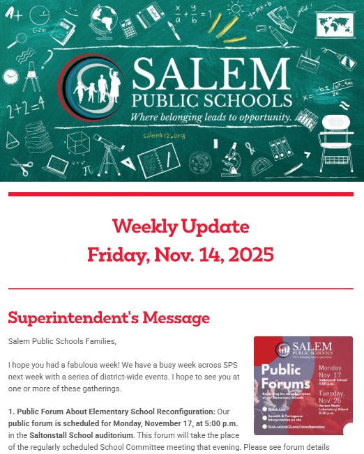 Salem Public Schools Weekly Update: Friday, Nov. 21, 2025