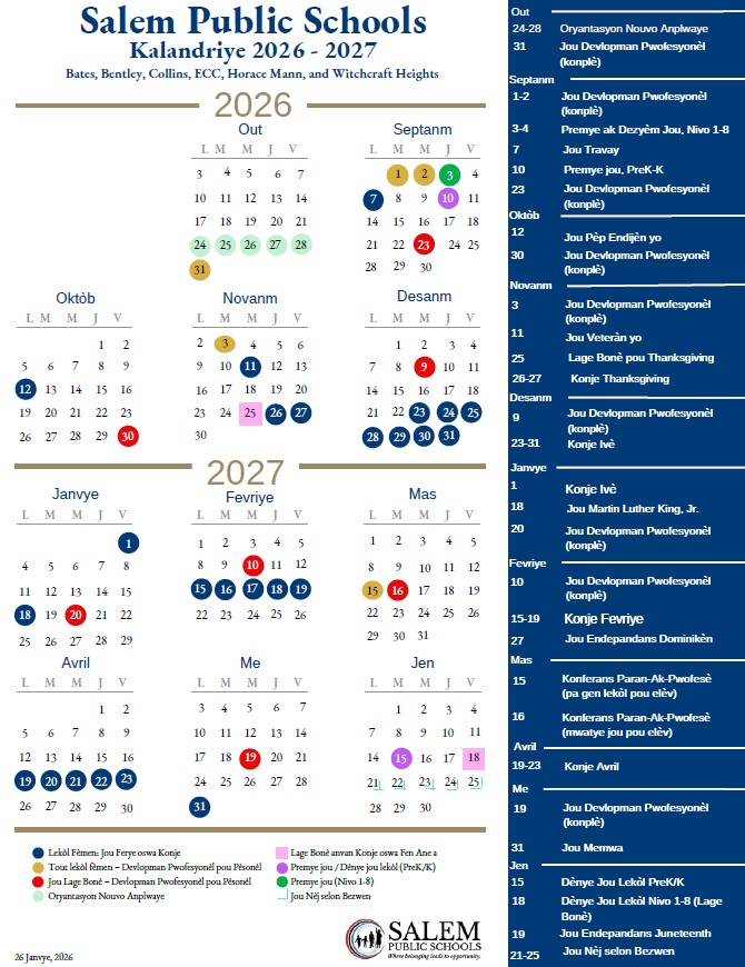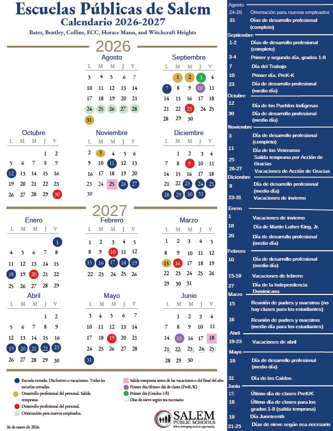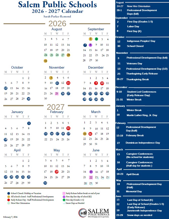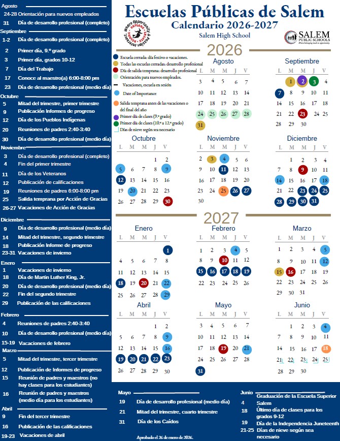 2026-27 Salem High School |  2026-27 Salem High School Calendar |  2026-27 Calendario de la escuela secundaria de Salem |  2026-27 Calendário da Escola Secundária de Salem |  2026-27 Kalandriye Lekòl Segondè Salem |