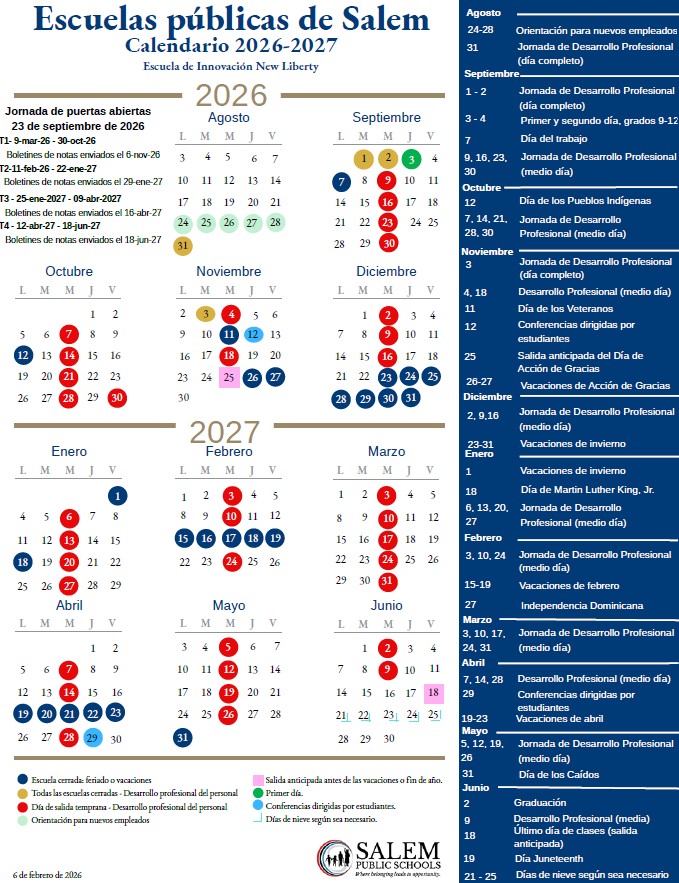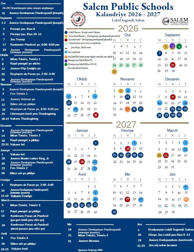 2026-27 District Calendar |  2026-27 District Calendar |  2026-27 Calendario del Distrito de Escuelas Públicas de Salem |  2026-27 Calendário do Distrito Escolar Público de Salem |  2026-27 Kalandriye Distri Lekòl Piblik Salem nan |