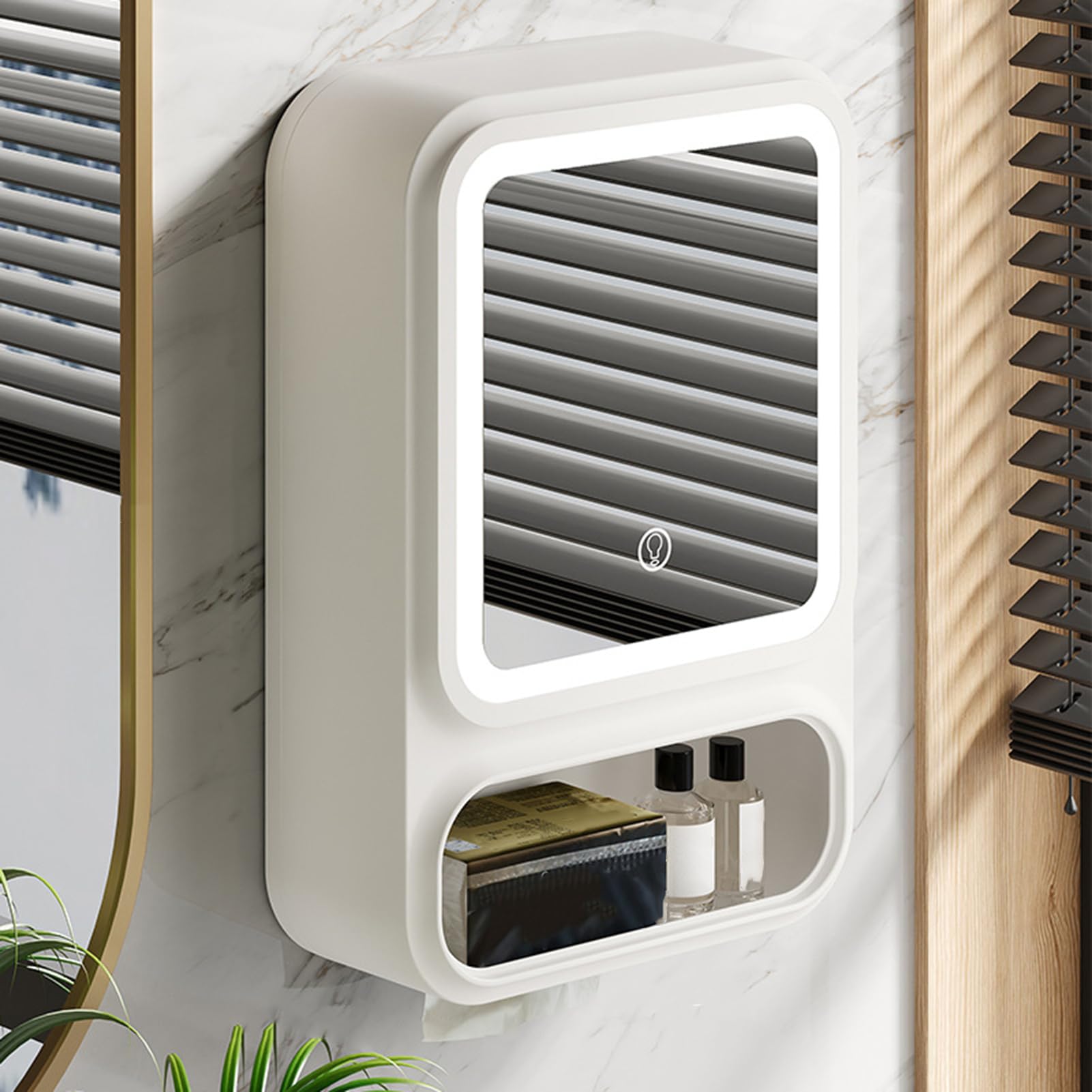 Mobiletto Specchio Bagno Con Luci LED – 42x28x11,5 Cm, Ripiano Regolabile, Dispenser Carta – Design Moderno, Impermeabile, Per Trucchi E Shampoo