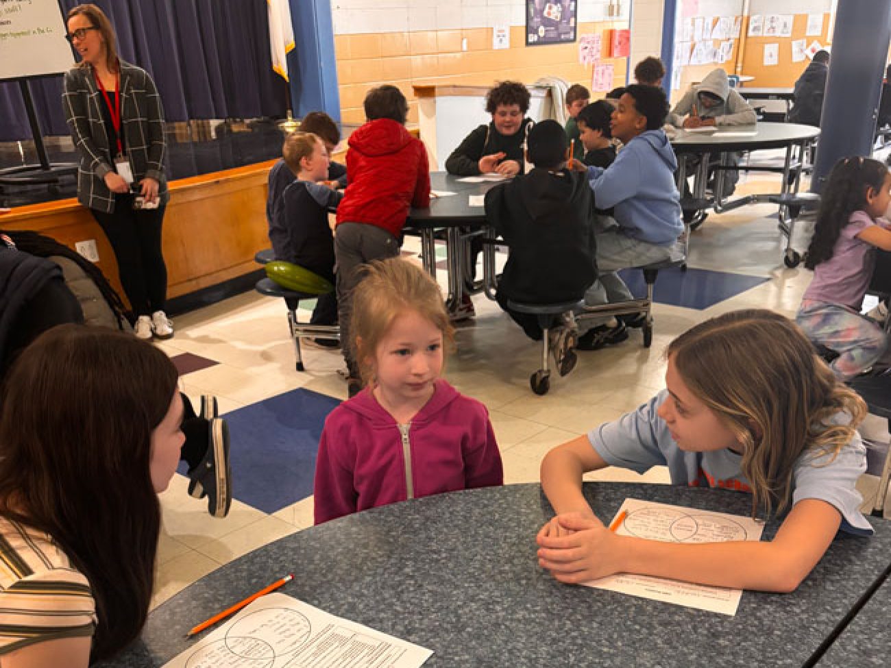 Emphasizing the Salem Public Schools Strategic Plan core value of belonging, Collins Middle Schools sixth graders — all of whom Bates Elementary School alumni — returned to their alma mater to meet Bates pre-K students on Thursday, Apr. 9.