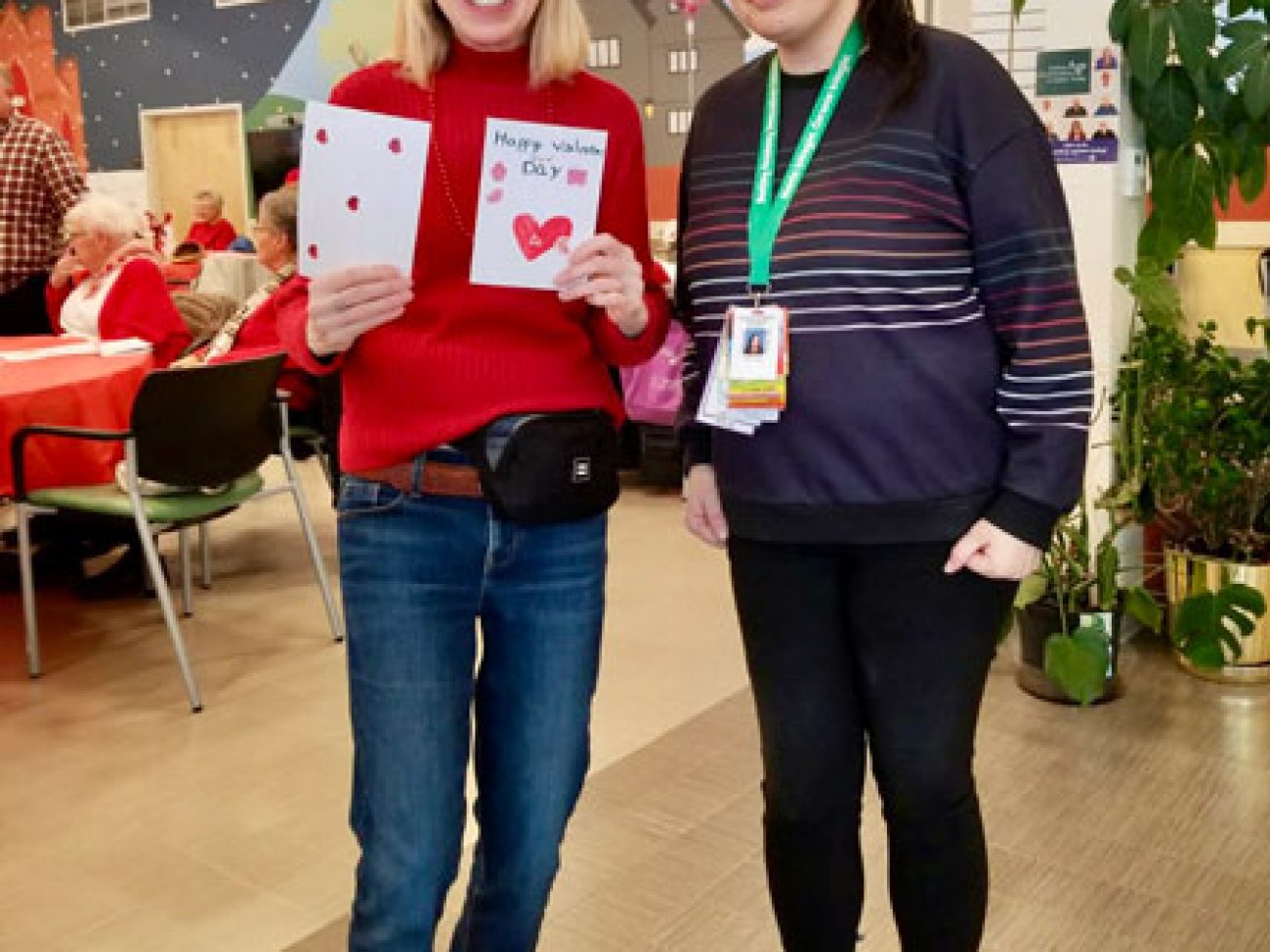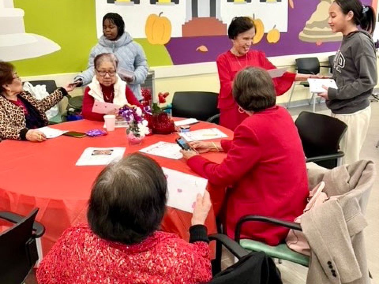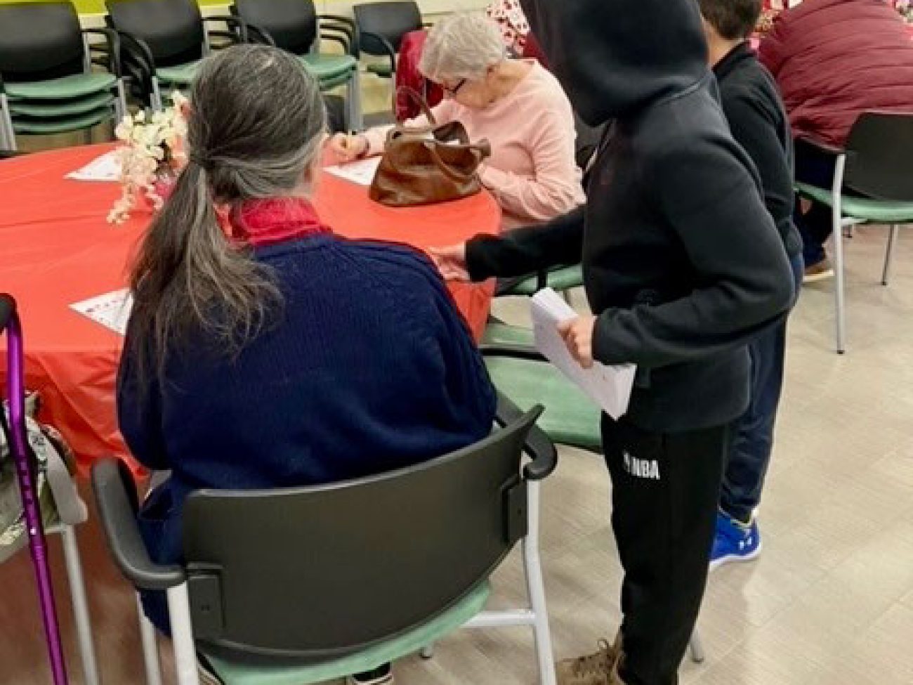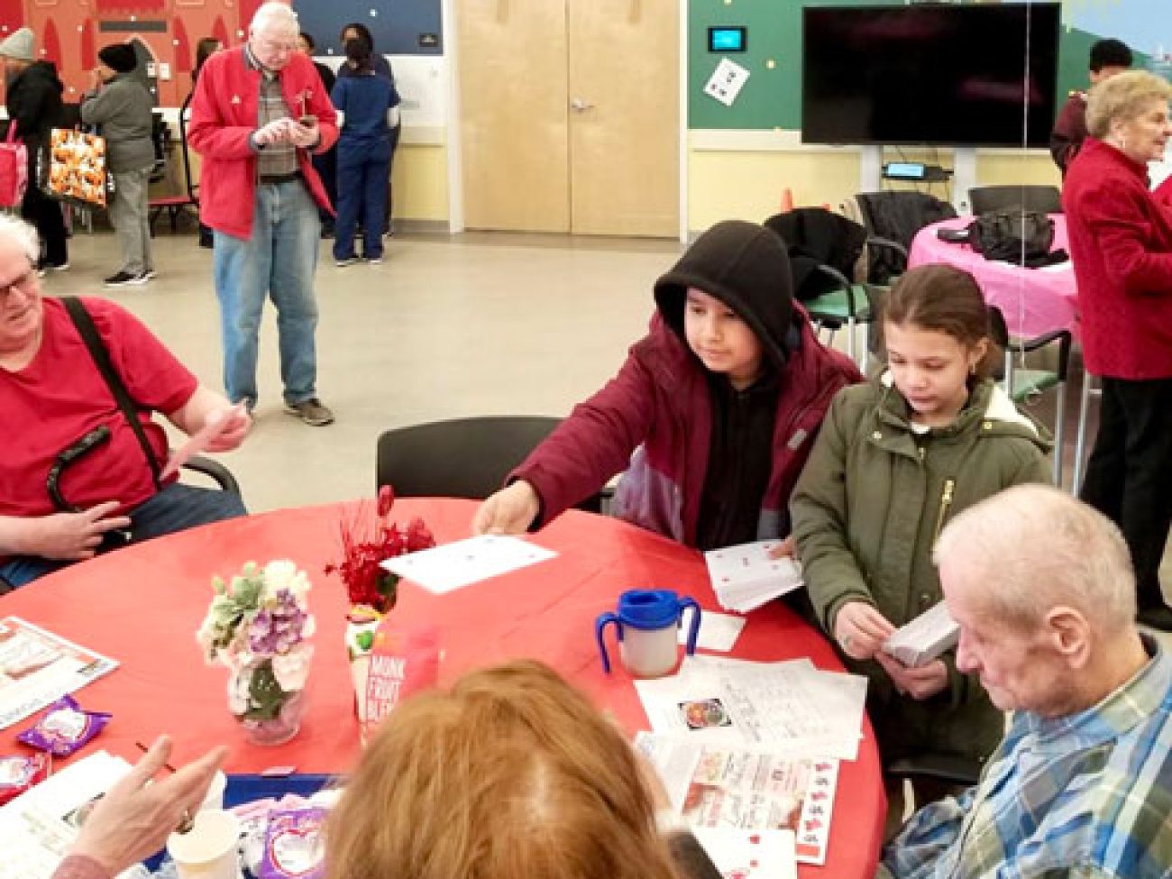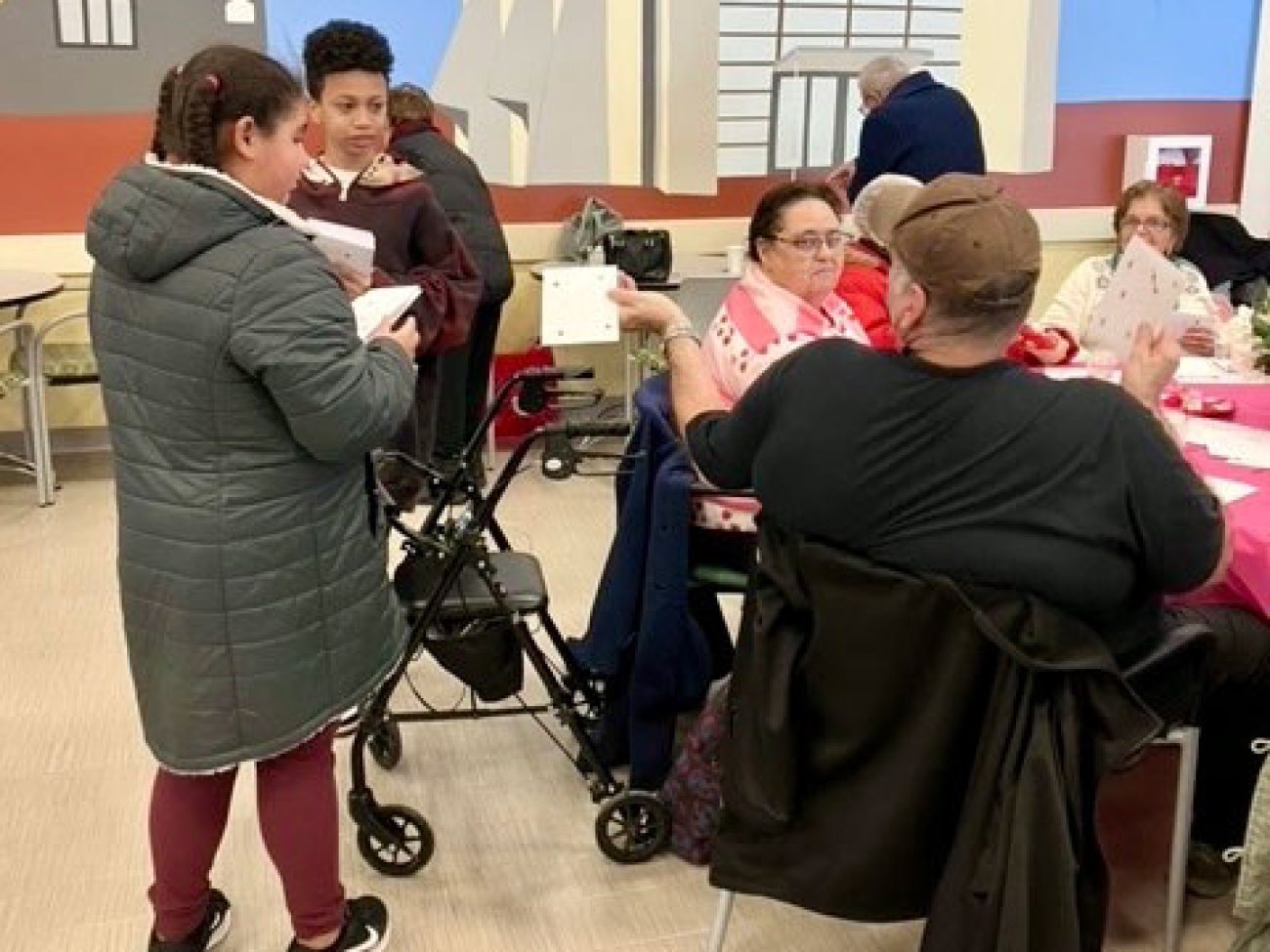 On Wednesday, Bentley Academy Innovation School Assistant Principal Yamilis Cruz brought eight fifth graders to the Salem Council on Aging’s Valentine’s Day Brunch at the Jean A. Levesque Community Life Center. Last month, Bentley students (kindergarten-fifth grade) made Valentine’s Day cards during their ‘Flocks’ activity, and delivered Valentine’s Day cards to Salem seniors and veterans Wednesday — in English, Spanish and Portuguese.