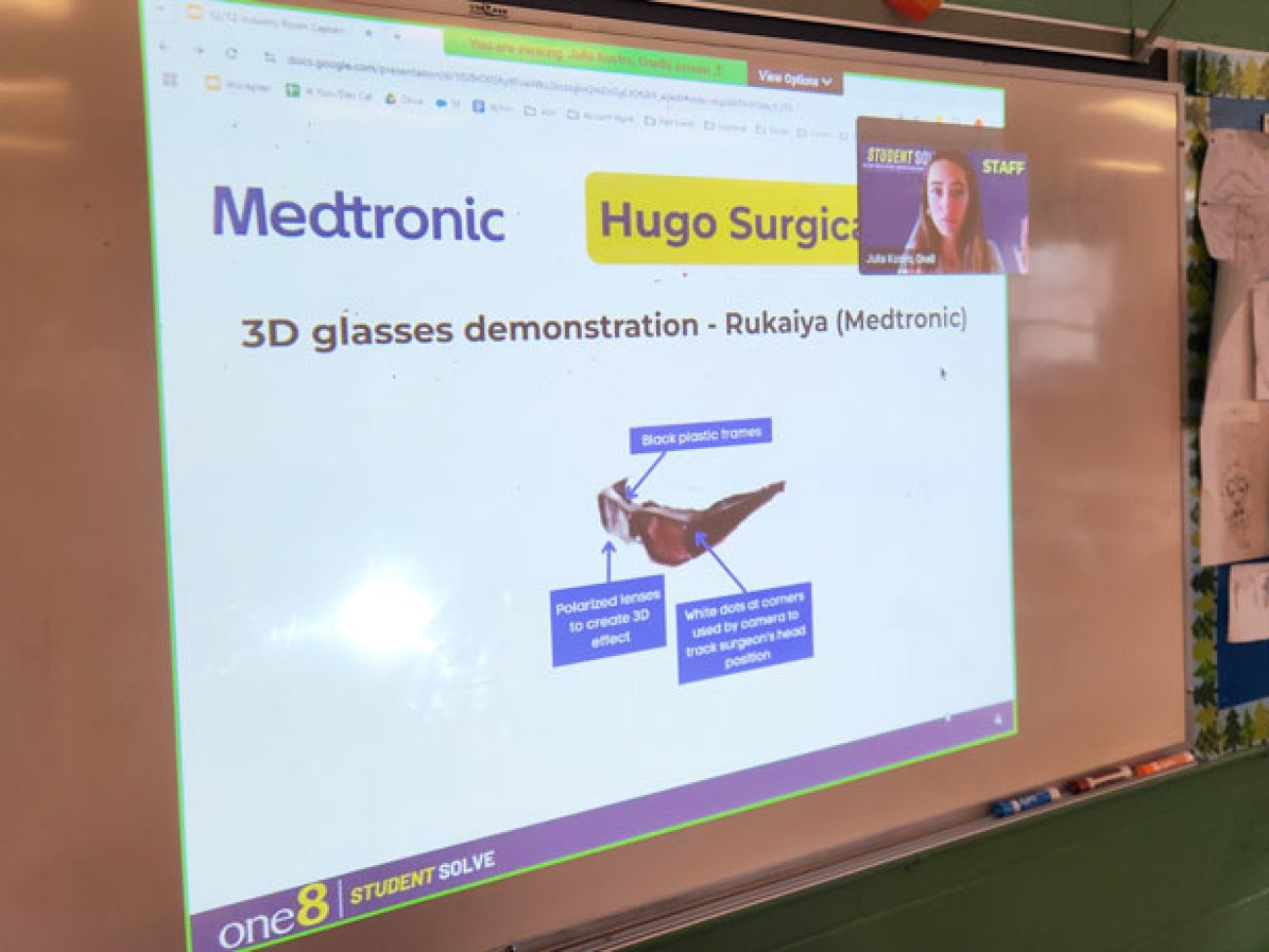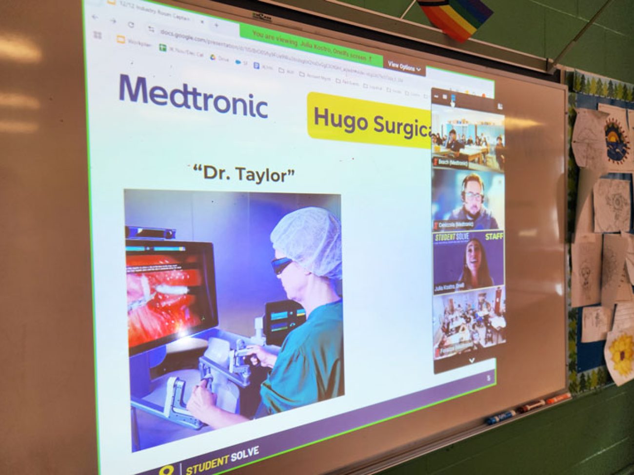 The Dec. 12 lesson was organized by One8, which provides schools with access to and support for learning programs that build the knowledge and skills students need to succeed. Medtronic and Verizon, educational partners of One8, are two of six businesses – joining Alnylam, National Grid, Philips, and Sanofi,– which offered challenges for students statewide.