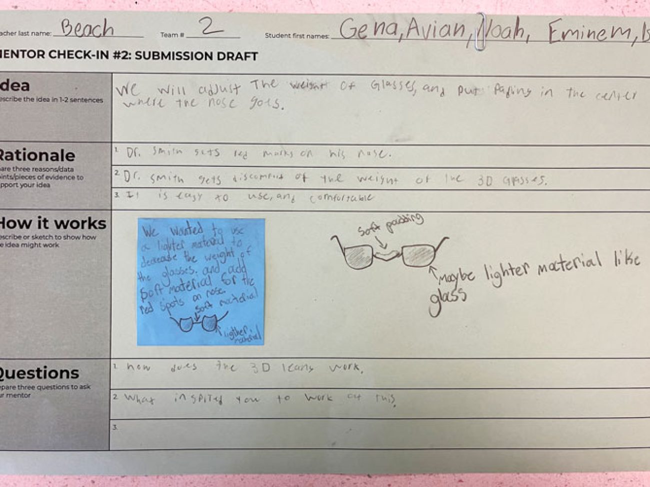 “They got a good feeling that what they were doing was real, not just a school assignment, but a real-world problem,” Mr. Muench added, which underscores the District’s 2023-26 Strategic Plan as well as the shift to project-based learning for all middle school students effective this year. “The mentors were excited that there are kids genuinely interested in their field.”