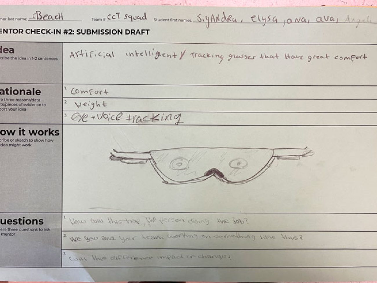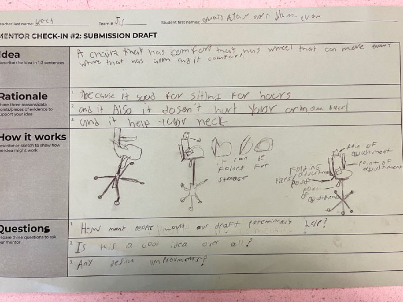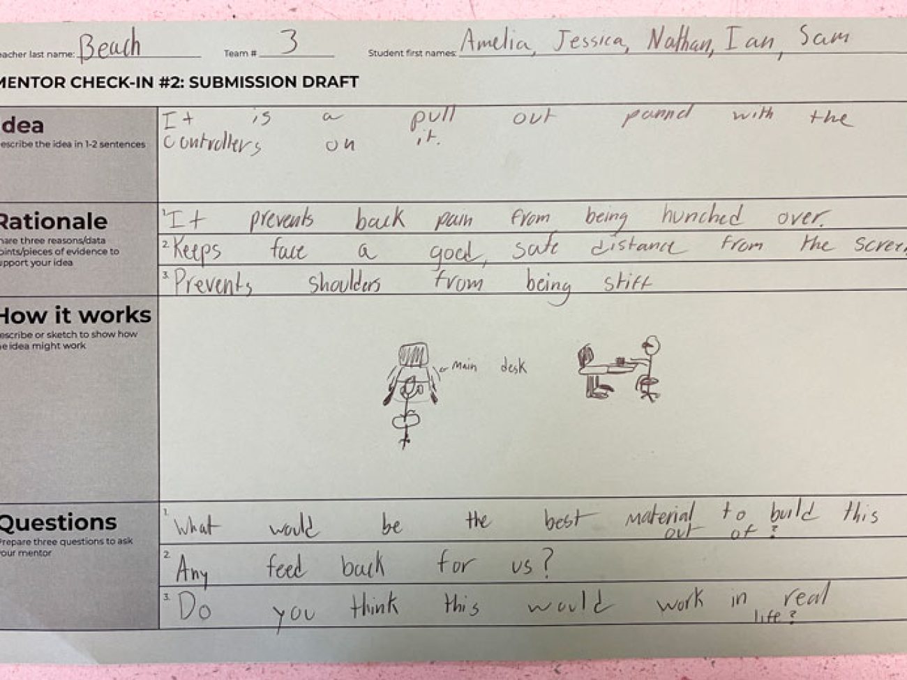 - It was also during this time students met with their mentors via Zoom, then decided on one idea and logged it on the submission form.
