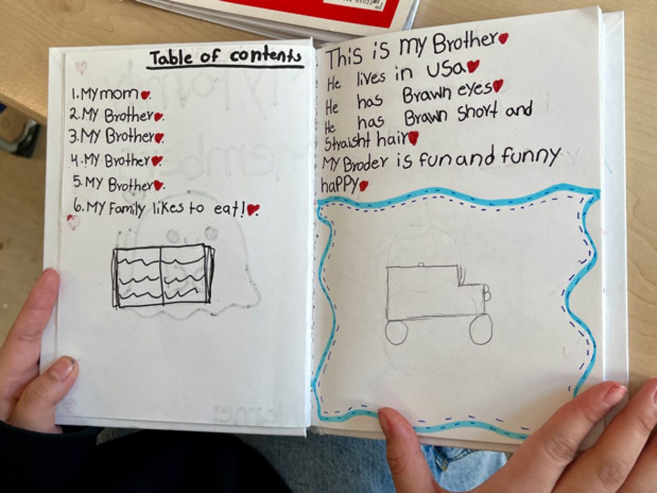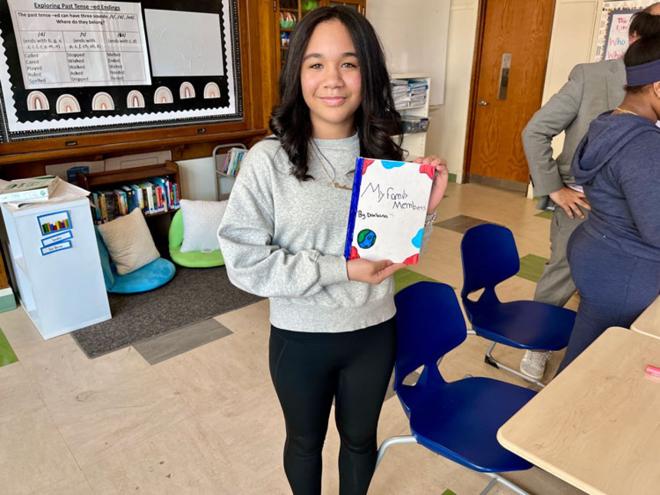 Ms. Buttafuoco’s scholars have spent the last month improving their English skills through writing their own picture books discussing all things family, feelings and favorites (clothes, foods, and hobbies). Scholars then read their stories aloud to classroom guests.