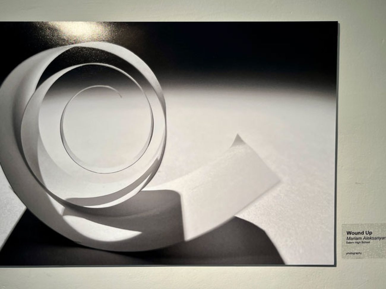 Ms Aleksanyan’s image titled ‘Wound Up’ shows a rolled up strip of card stock paper mindful of a ‘@’ symbol.