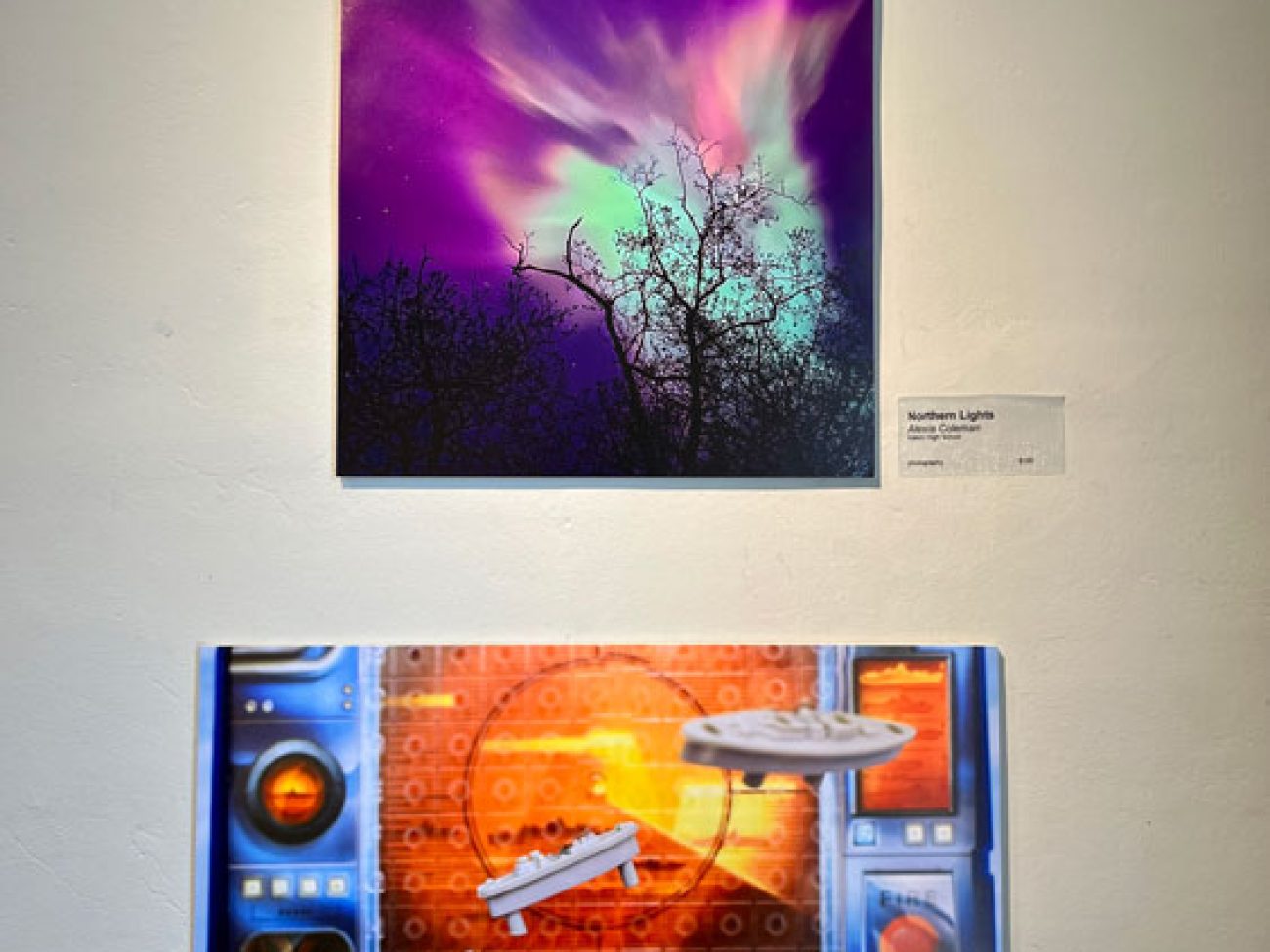 Ms. Coleman’s ‘Northern Lights,’ is a stunning photograph presumably taken during the rare Aurora Borealis appearance on the North Shore over the summer. The image marked her second selection in as many years for the Through the Student Lens exhibit after her photograph titled ‘Pinhole and Positive Pinhole’ was selected a year ago.