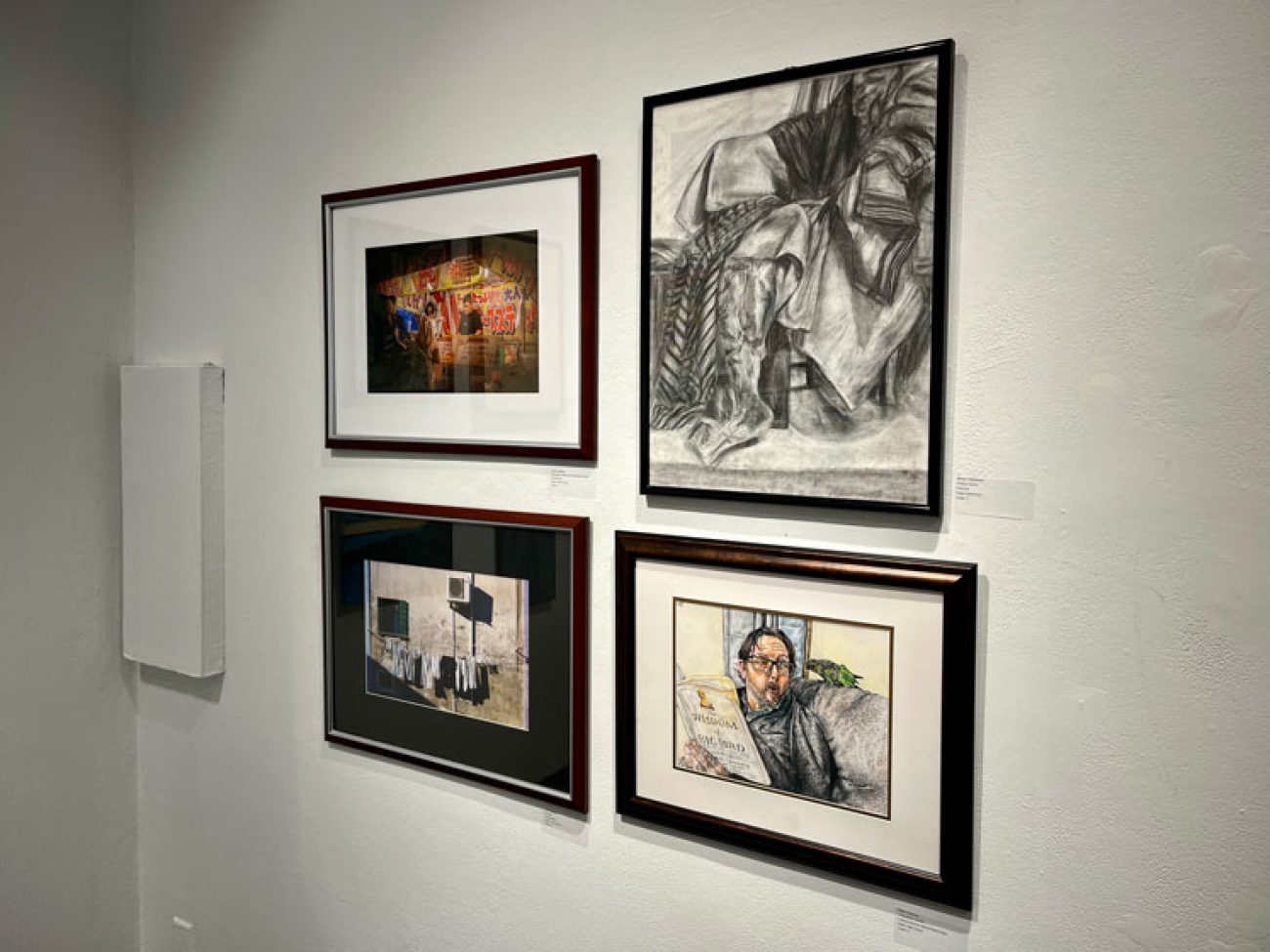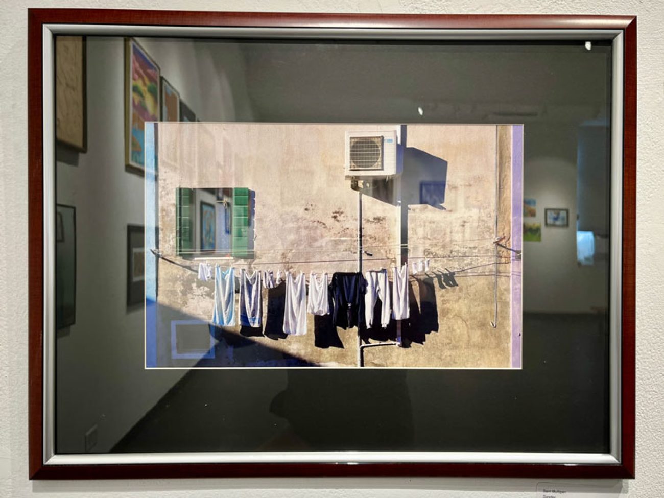 Also displayed in the Congressional contest was a photograph titled ‘Sunday’ by junior Sam Mulligan, depicting a full clothesline of whites outside a concrete building in vibrant sunlight casting significant shadow.