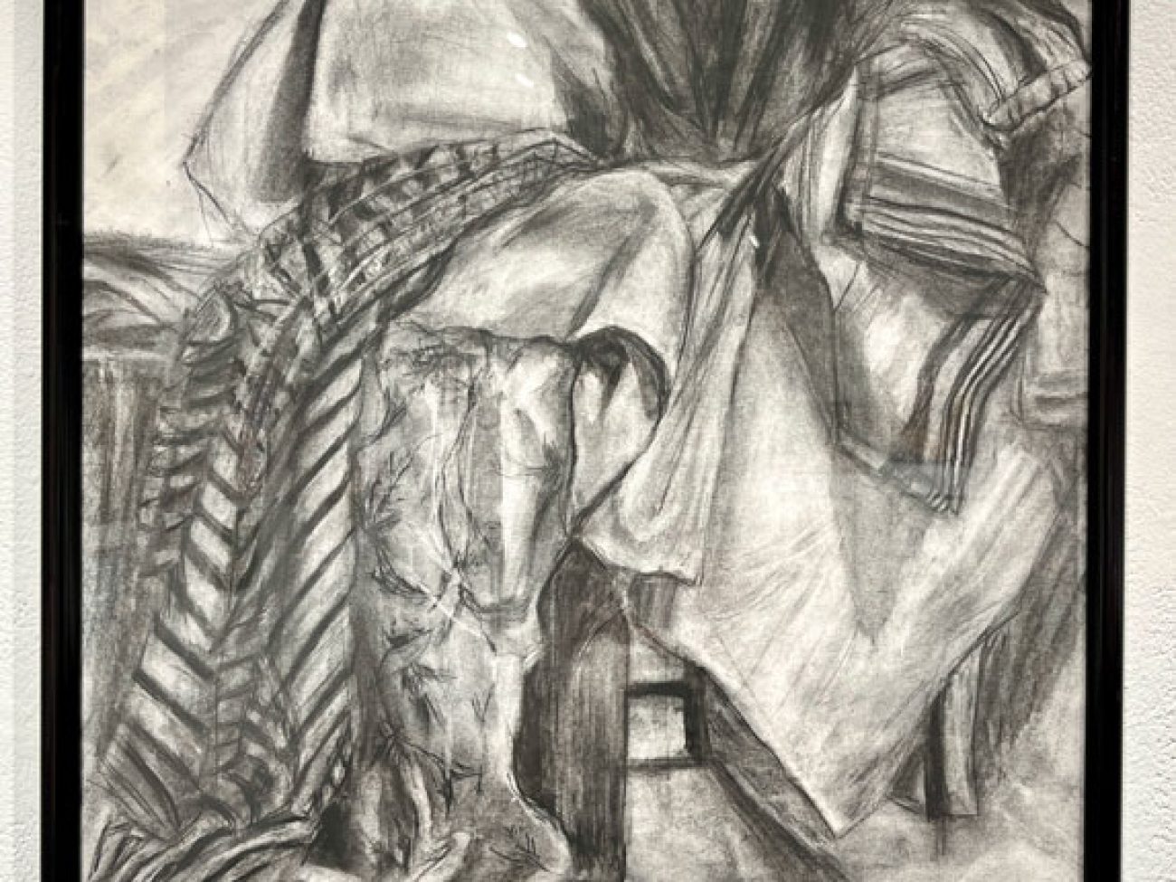 Ms. Aleksanyan’s work in the Congressional Art Competition, titled ‘Folding Fabrics,’ earned the honor of Best in School among all SHS submissions. The black and white pencil sketch depicts different fabrics – presumably clothing, towels and blankets – draped over a wooden chair seemingly in the shape of someone sitting.