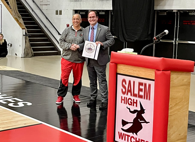 Three retired numbers grace the wall of the Salem High School: One of a former NBA player, one of an NBA draft selection and, as of Friday, the greatest women’s basketball player in SHS history now an all-star educator, coach and mentor.