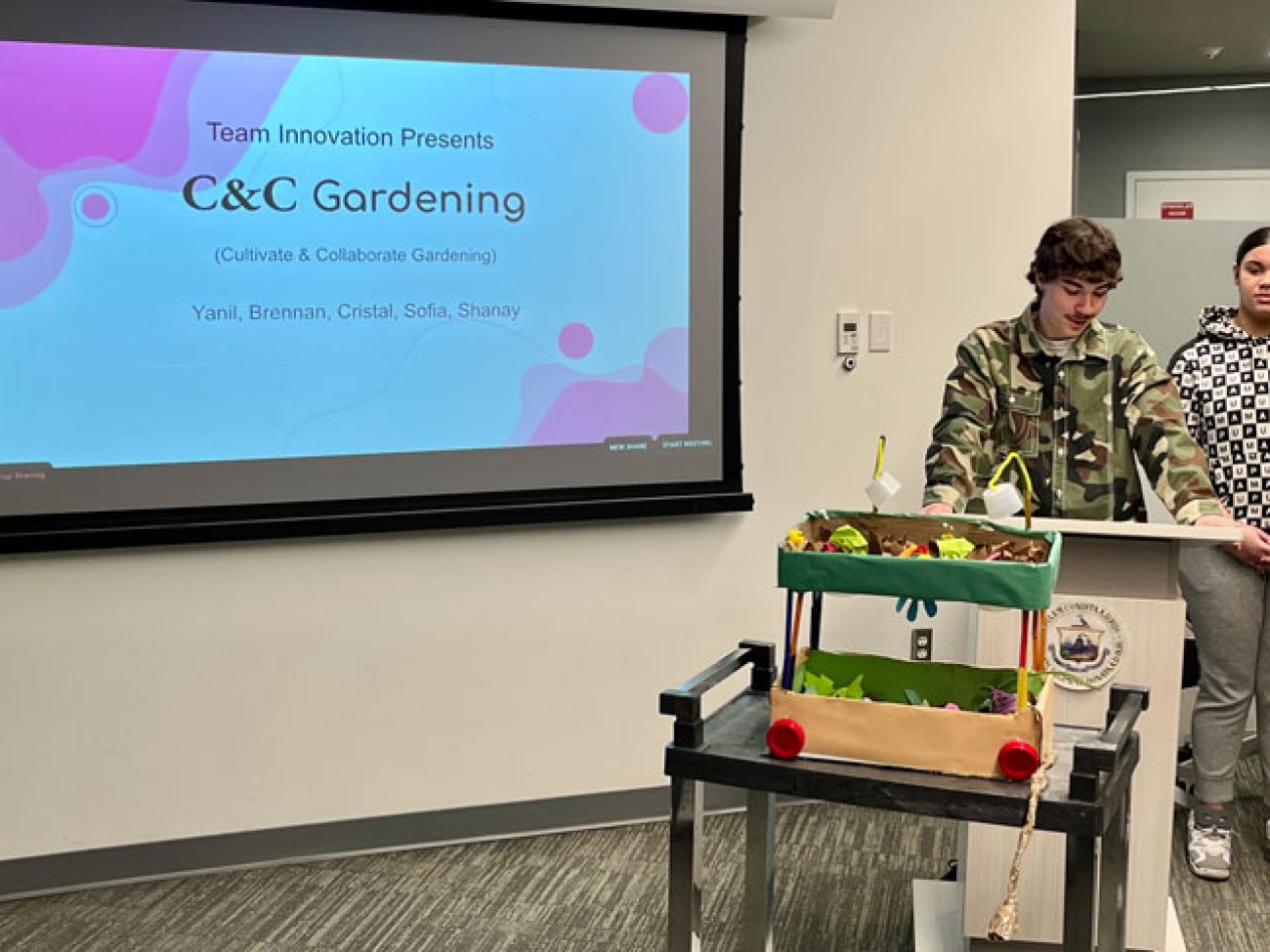 In the case of the self defense student on a limited income, the cohort of sophomores Shanay Love and Yanil Ortega, juniors Sofia Torres Alvarado and Brennan Connor, and senior Cristal Toribio Collado, uniquely tailored her solution: gardening.
