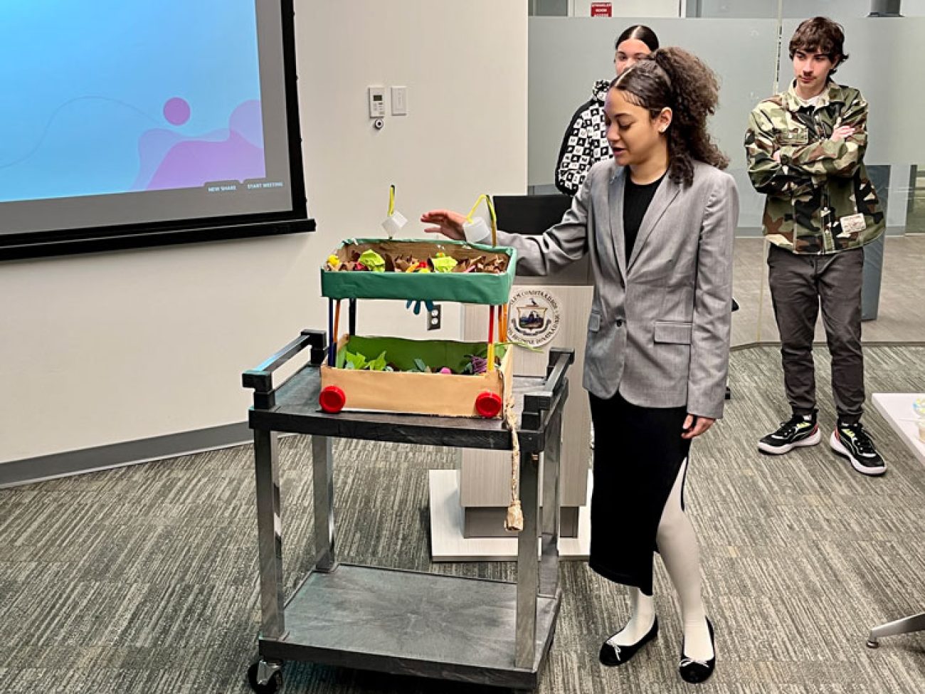 For any high school student, presenting your solution then defending it through a barrage of questions – Shark Tank style – is intimidating. It is, however, consistent with NLIS’s Portrait of a Graduate: collaboration, communication, creative problem solving, critical thinking, cultural competence, and self awareness.