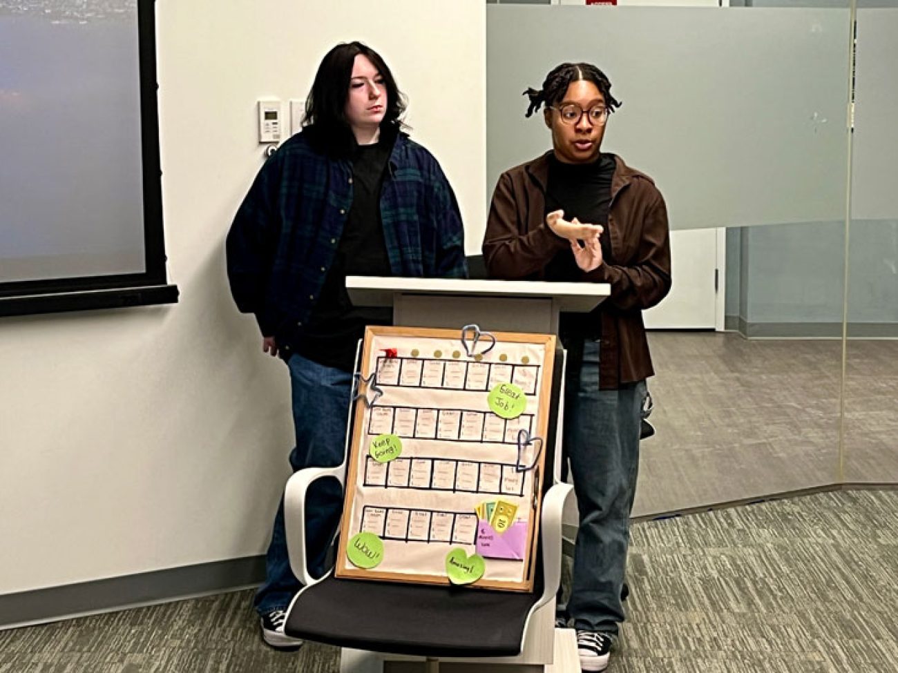 For the self defense instructor/budding property investor struggling with time management, the team of sophomores Jay Rodriguez and Carolin Duarte Tavares and juniors Jay Thompson and Seniaiah Lites created The Board of Life, a physical white board planner and board game.