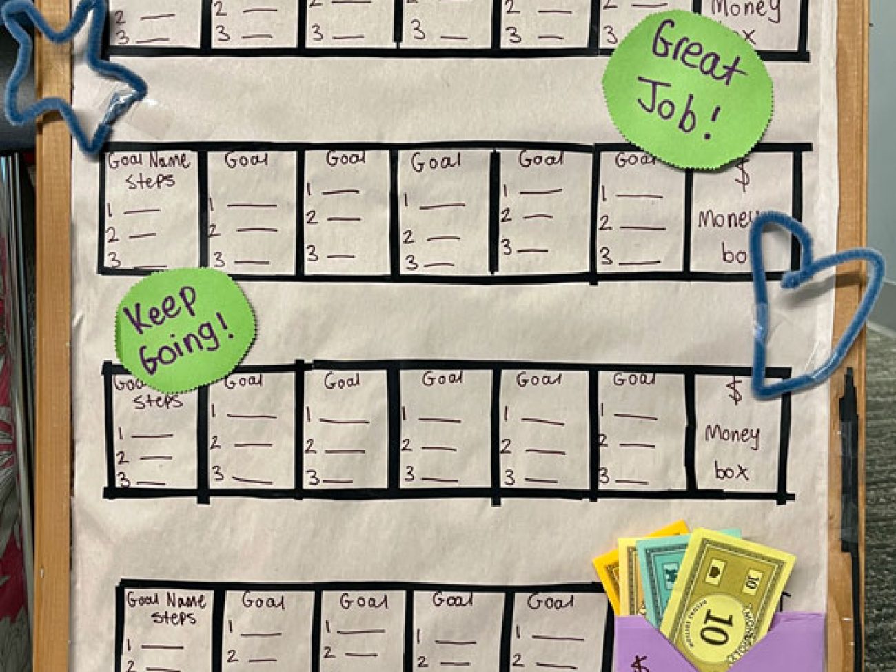 The Board of Life, said Mr. Rodriguez, will appeal to those with competitive streaks and an affinity for board games. Each space is a goal – written down on the board – and a requirement to add money for each goal achieved.