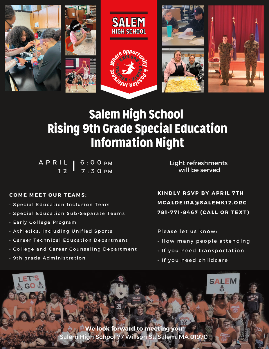 Current grade 8 students and families are invited to SHS’ Special Education Information Night on April 12th from 6-7:30. Come meet SHS staff and learn about programming. More information can be found using these links. English / Spanish / Portuguese