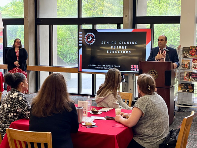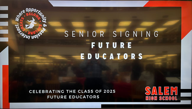 More than 60 Salem High School seniors attended the Class of 2025 Future Educators Celebration and Senior Signing Friday morning, May 23, at the SHS IMC Library.