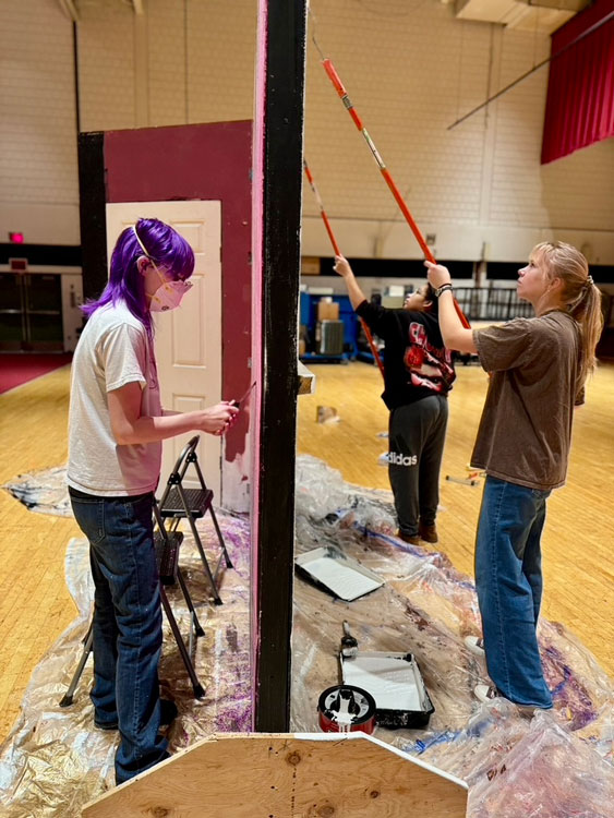 “This is our full circle moment as a department,” she says. “Four years ago we were still coming back from masked and remote learning, where kids spent significant time alone and behind screens. The bravery, collaboration, and hand skills required from theater is a very heavy lift. It has been wonderful to see our performers and crew members grow those skills as we regrew our department. We now have almost 30 kids working backstage and as many onstage.”