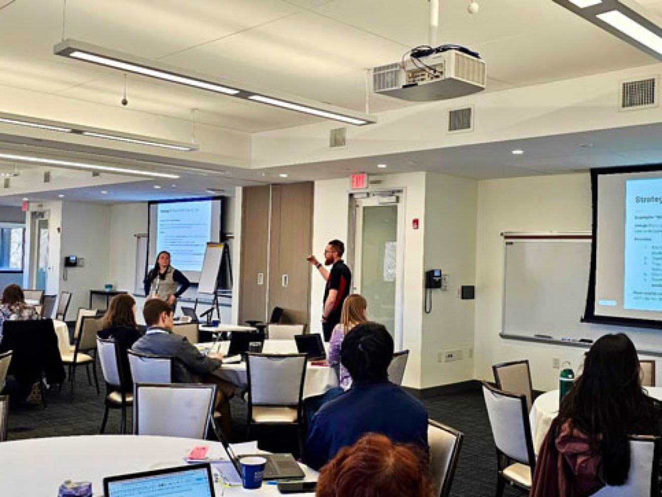 Mr. Yeager partnered with Katie Cunningham, an information technology instructor at Blackstone Valley Regional Vocational & Technical High School, to deliver the presentation, ‘Creating a Collaborative Classroom.’