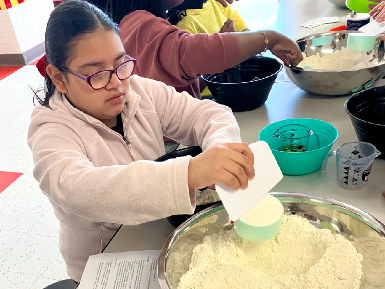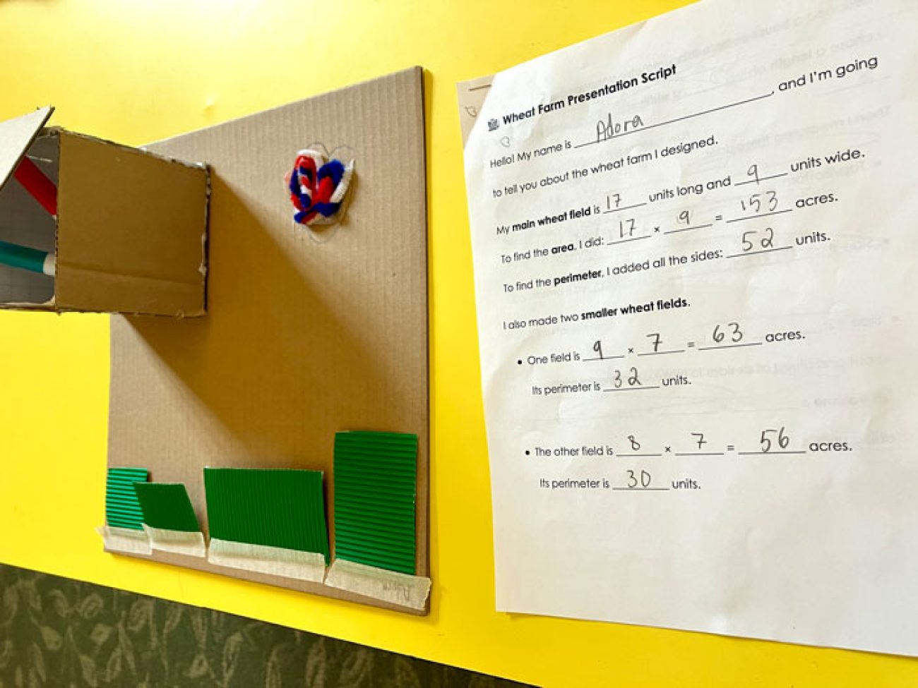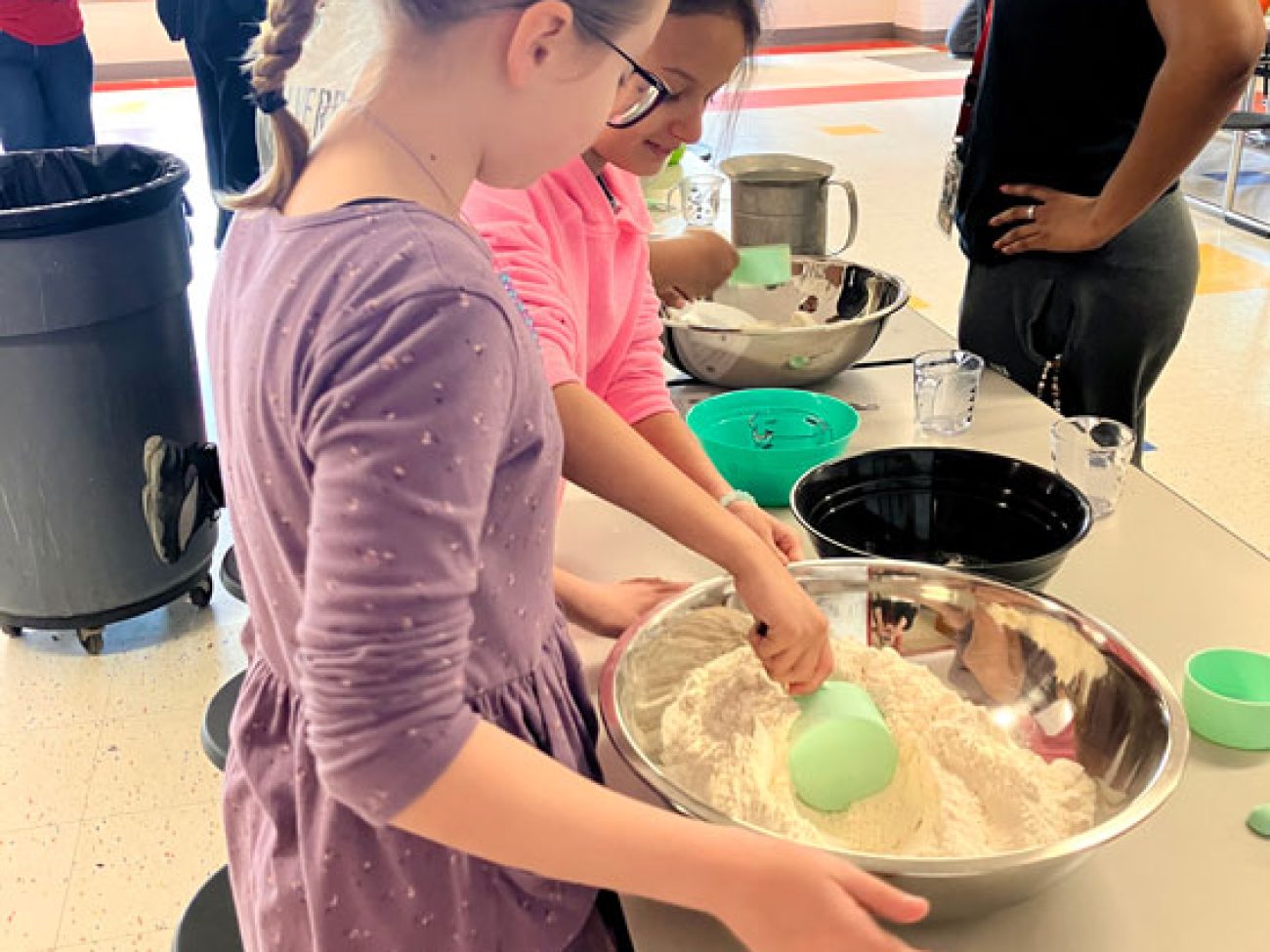 Pre-K and elementary students engaged in a STEM-focused farm-to-table themed week. Through a partnership with New Entry Sustainable Farming Project and Iron Ox Farm, students learned about the wheat plant and met farmer Stacy Apple of Iron Ox Farm who provided students with insights into wheat cultivation. Integrating geometry standards, students developed and designed scaled wheat farms. To finish out the week students utilized flour provided by King Arthur Baking Company to create skillet flatbread.