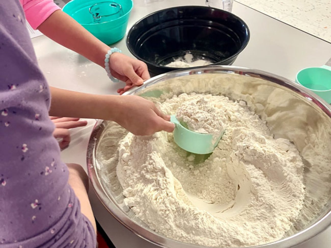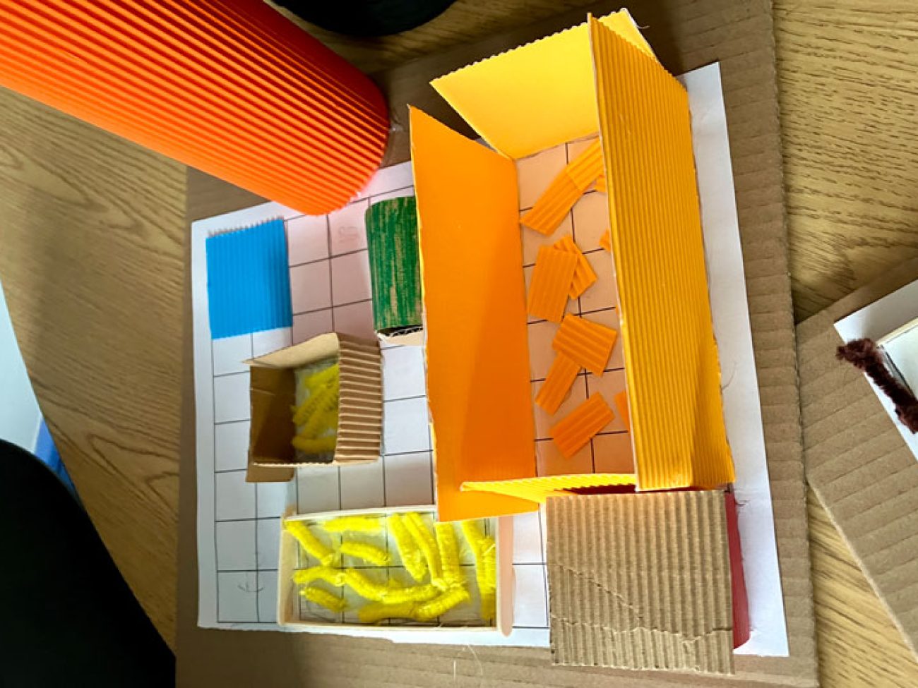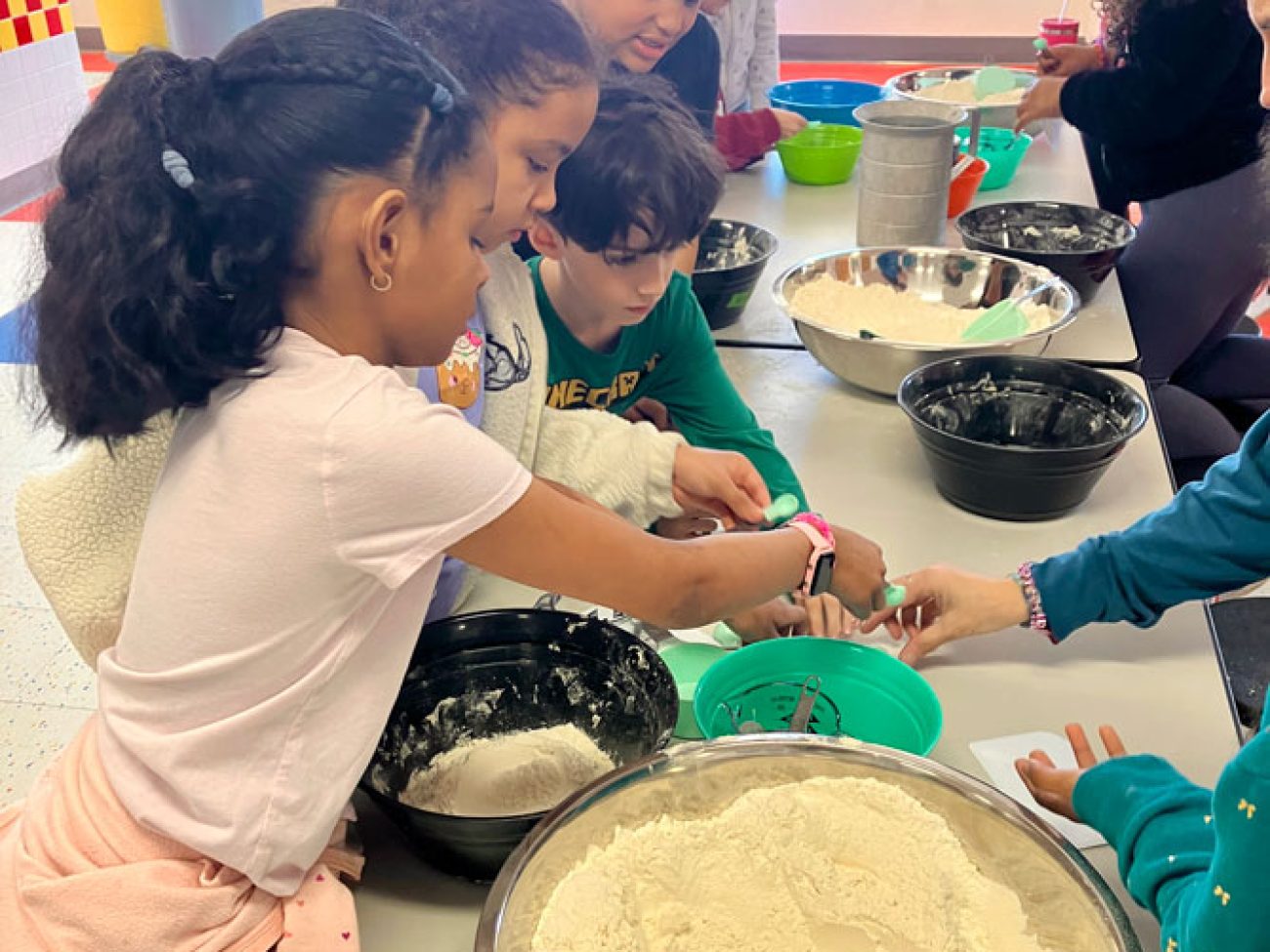 Pre-K and elementary students engaged in a STEM-focused farm-to-table themed week. Through a partnership with New Entry Sustainable Farming Project and Iron Ox Farm, students learned about the wheat plant and met farmer Stacy Apple of Iron Ox Farm who provided students with insights into wheat cultivation. Integrating geometry standards, students developed and designed scaled wheat farms. To finish out the week students utilized flour provided by King Arthur Baking Company to create skillet flatbread.